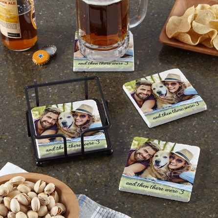 Personalized coasters, photo buttons & magnets, coffee mugs Using a patented process, the image you choose from the prototype set is then printed on tumbled marble tiles for use on one of the tile products (journal, coaster set, trivet). Photo coasters of personalized coasters luckycouplescharms $ 6.11. Add your own design on to durable and waterproof coasters that are built to last. Just send us your favorite photo or upload your digital image through our website (see order form for details) and we'll reproduce it onto a set of 4 striking coasters.
